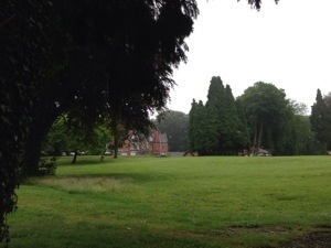 The trip from Bristol to Bridgend in Wales took us about two hours. I knew our accommodation was on an estate that had formerly been a Large family house, but it certainly exceeded my expectations. The long driveway approach was tree-lined and majestic, especially in the misty rain. Once settled into the room we decided to fight off jet lag once again by taking a walk, even in the rain. It was gorgeous. Just what people who live in arid country in the heart of Australia long to see now and then. Toto we’re not in Oz any more!