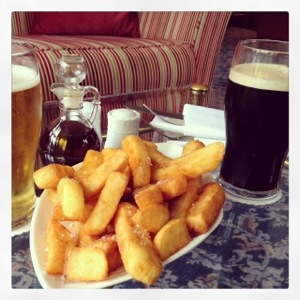 We returned to Coed-Y-Mwstwr via a slightly different route, stopping briefly for a light lunch to atone for our sins from the previous evening. Once ‘home’ again I washed my ‘smalls’, the penance for trying to travel lightly, and we retired to the comfort of the public bar and living room at the manor. After a day of atonement and penance, we couldn’t resist the allure of gluttony once again and we indulged in the delicious cider, a Guinness and those hand cut chips! What is a holiday for, after all!