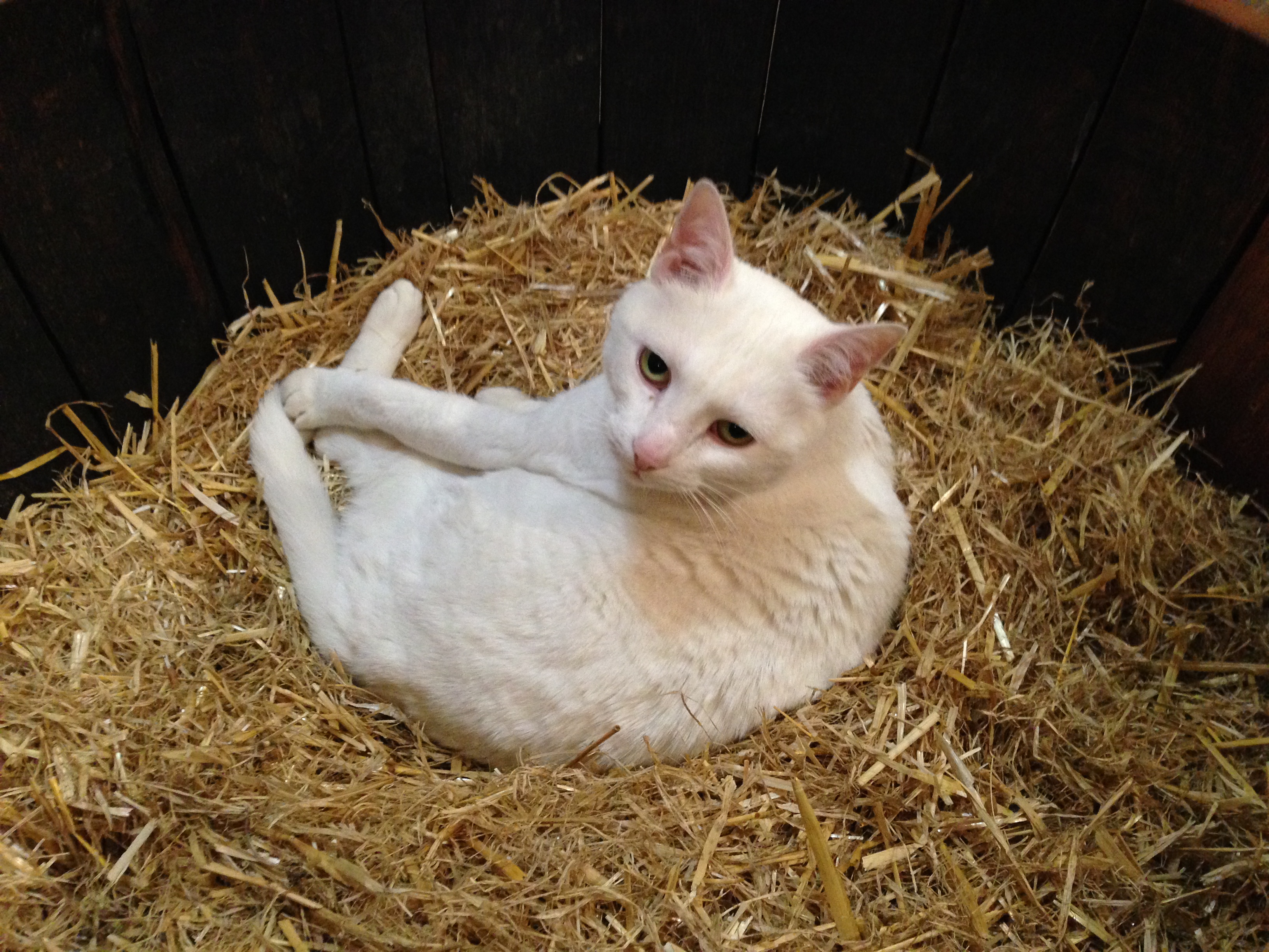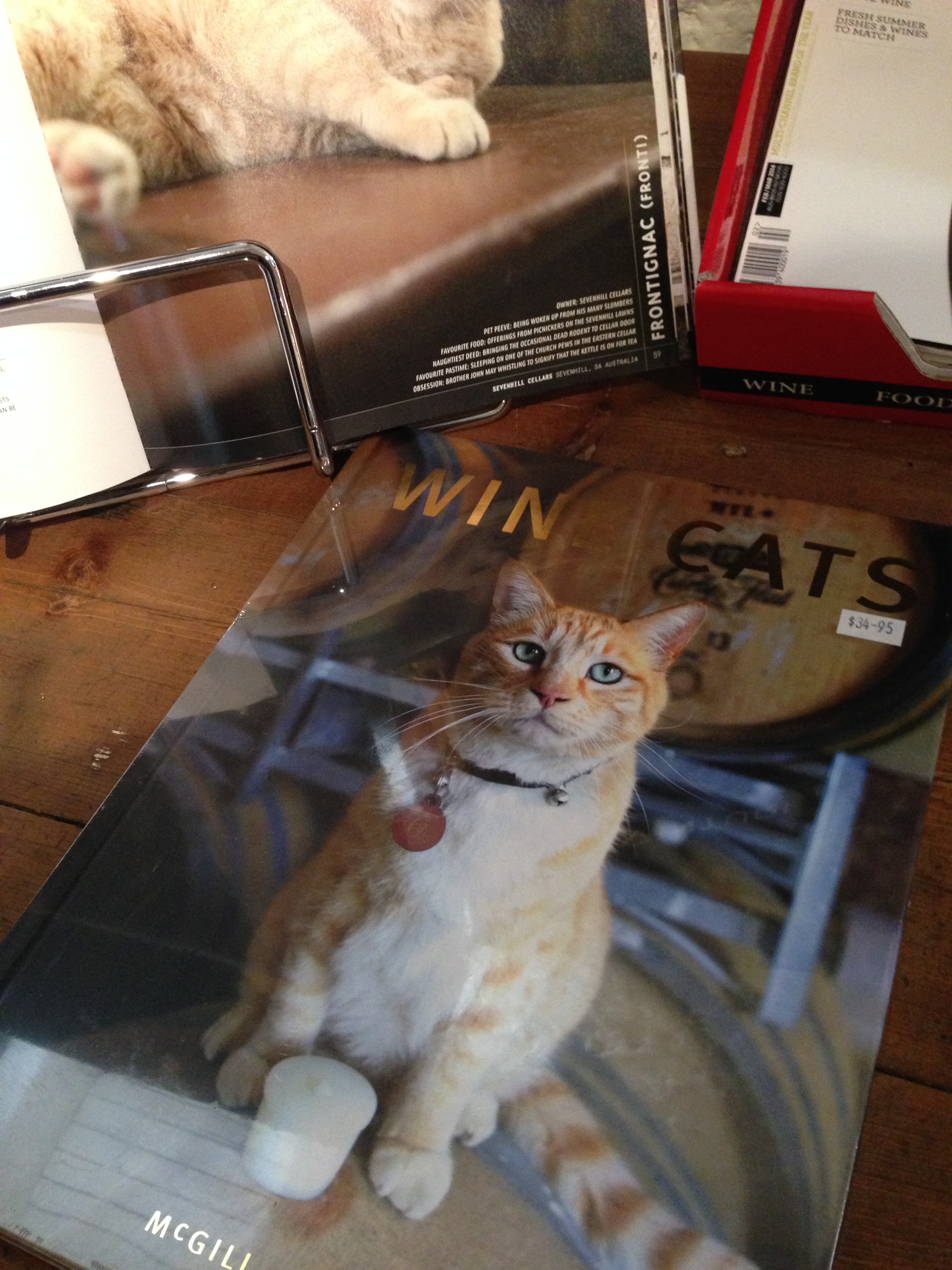 When I posted about our trip to Coonawarra last year, I showed you a book called ‘Wine Dogs’, and one of the lovely subjects of that book. Sevenhill had a book called ‘Wine Cats’. Their resident wine cat, looked up at me obligingly from its fresh hay bed in a half barrel, but not happily (as cats do), to allow me a photo.