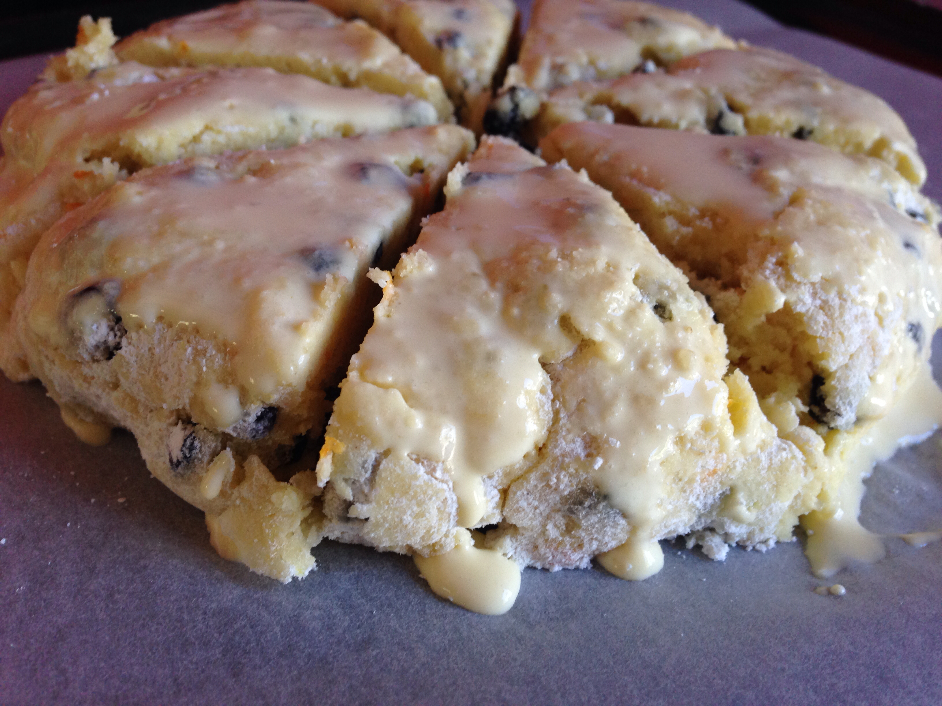 Bake for 12-13 minutes. The scones will be fairly crumbly, but delicious, if eaten while warm. Or they will become slightly firmer as they cool. Also the sweetness develops a bit further as they cool. The inside is a very tender, soft texture with a nice outer crust.