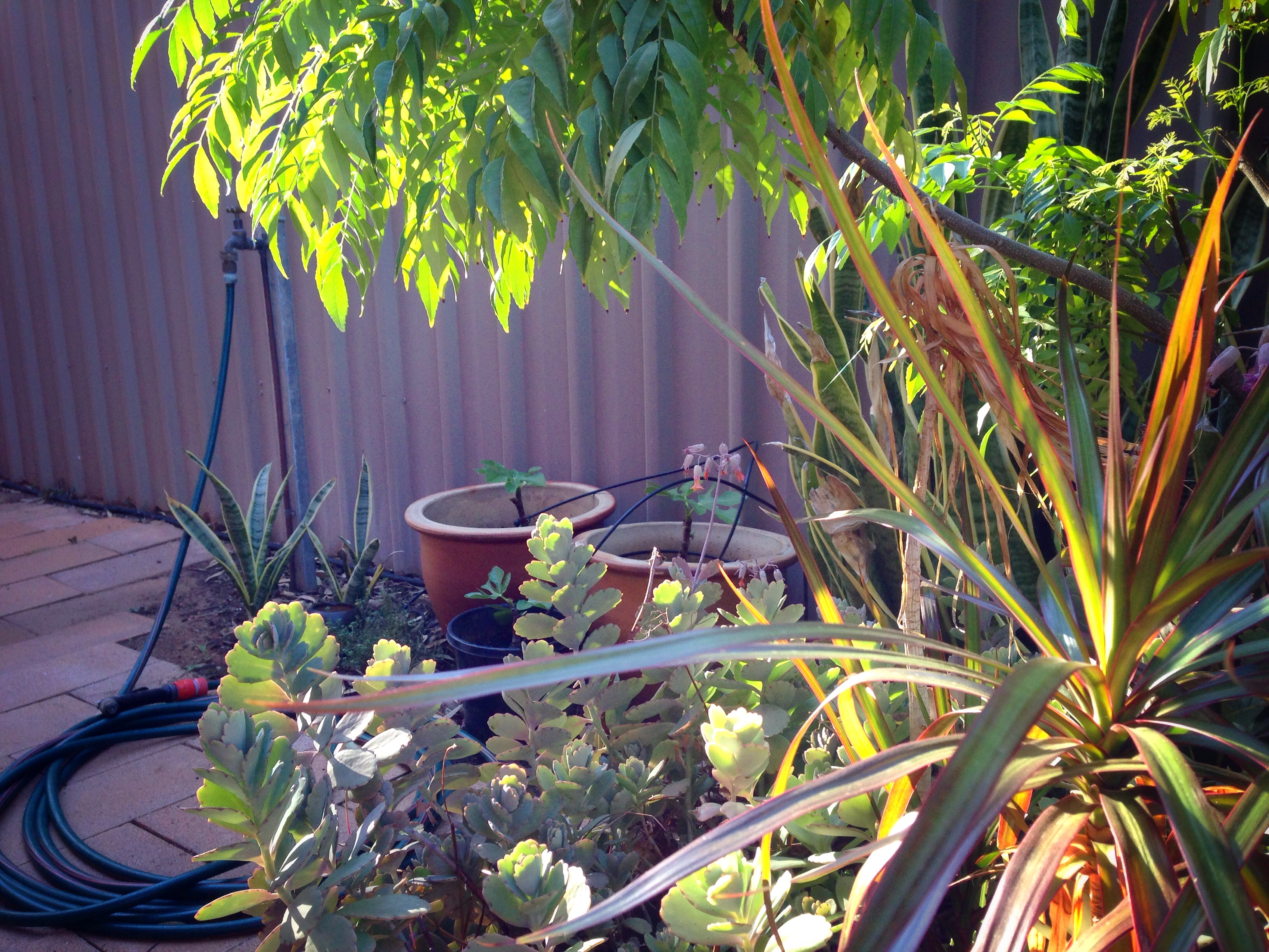 I have a secret little patch of… watercressโฆ plenty of moisture in a sheltered pot, shaded by the yucca plant. Shhhh…