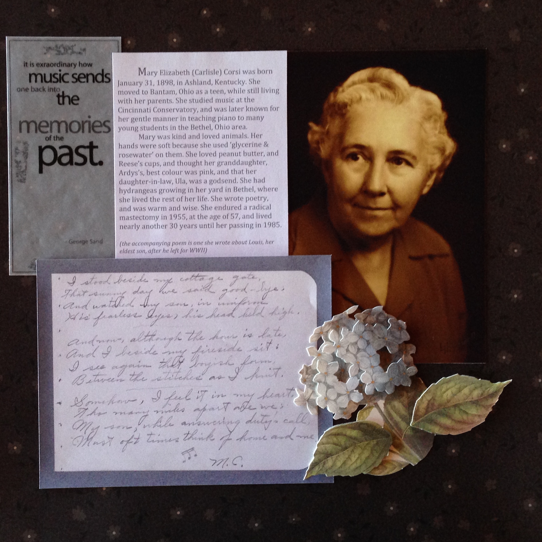 You can see the dilemma… how to put together the knowledge in my head, the photos in the file, give her a sense of connection, and not overwhelm her.