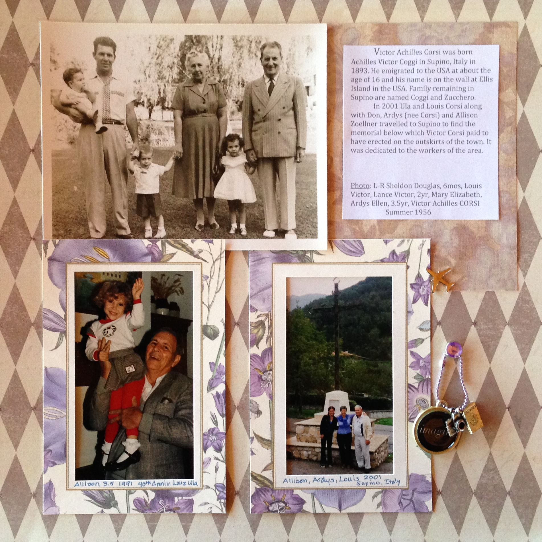 from Italy and back again–3yr old girl in top photo is me, 3yr old in bottom left photo is our daughter, the man depicted in the top photo, left side, and bottom two photos is my Dad, with his parents and children, and also in Italy, where his Dad was from.