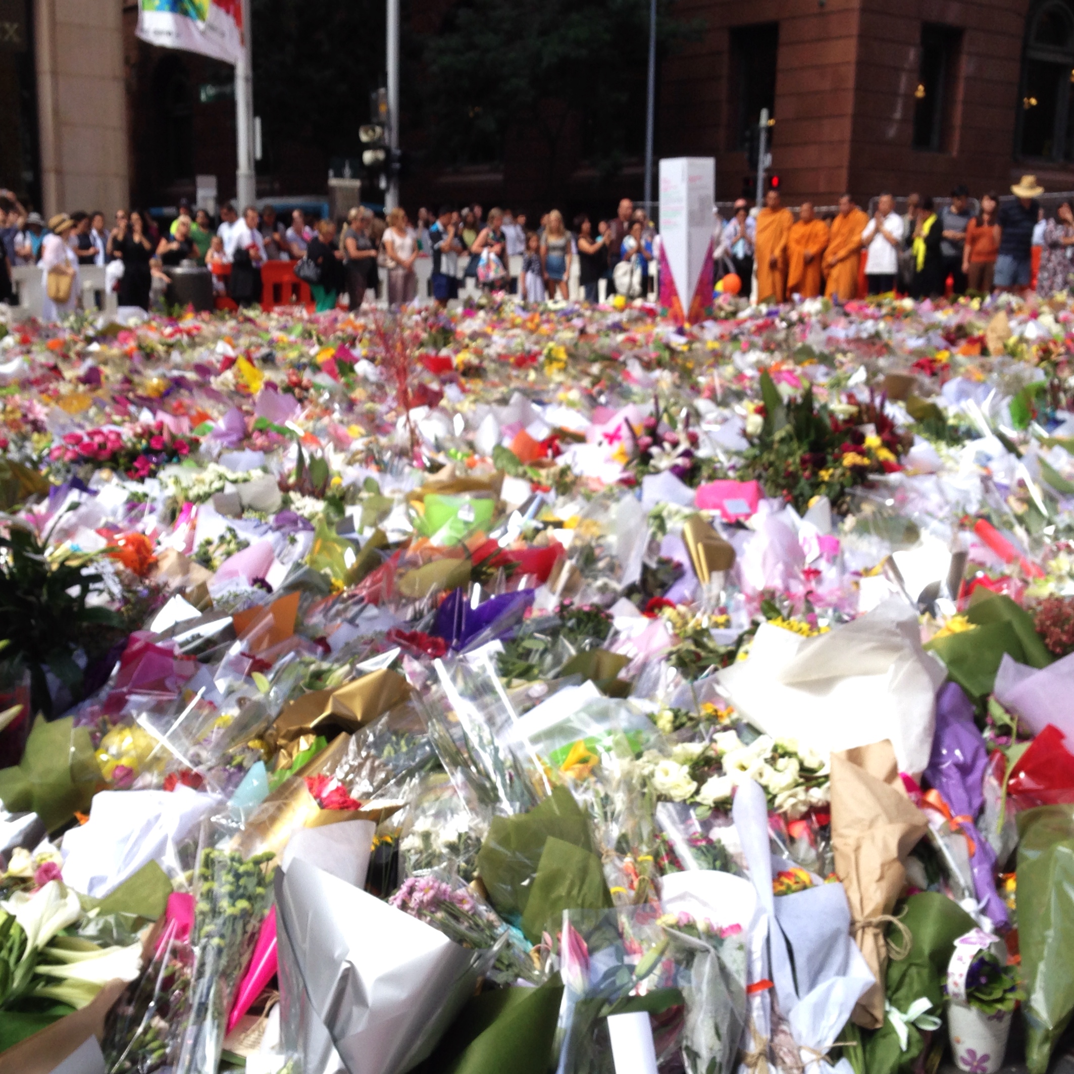 We flew in on Sunday, late afternoon, and less than 24 hours later, you know what happened. Little known to us, as we walked through Martin Place at 9.30 on Monday morning, 15 December, there was a terrible thing happening, or about to happen, within minutes. We were very near the Lindt Café when a lone gunman took the unsuspecting staff and patrons as hostages.