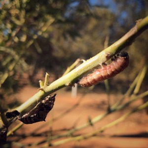 The following morning I decided to again try my luck and chase the butterfly trail. Since there was not a single leaf left on the two bushes where I found chrysalises, I hadn’t been able to identify the plant they chose for their nursery. Fortunately, a local woman saw my Instagram post and added the identifying species of both plant and butterfly. Gold. When she said the name of the plant something seemed very familiar. I turned it over and over in my head and then looked it up online. More gold. It turned out, even though these bushes were currently without foliage, I had actually photographed one four years ago in full foliage and with a gorgeous blossom. Eureka! The plant is called Bush Passionfruit and both the blossom and the fruit hold some similarities to the domestic passionfruit. The blossom smells very sweet, has long stamen and the fruit is much smaller but sweet and usually attacked by birds and ants before humans can retrieve it! It is a well known bush food for the indigenous people. Apparently the plant recovers very quickly after the decimation of the leaves.