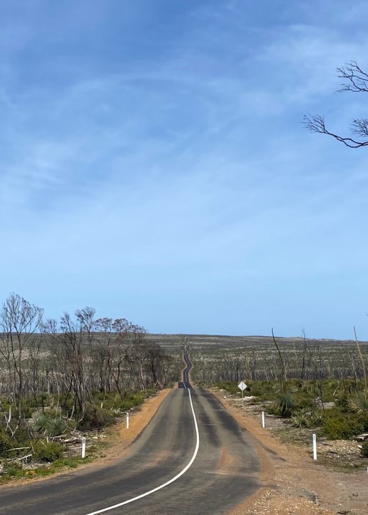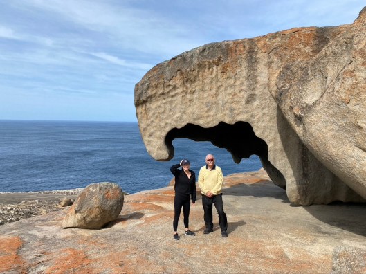 The first of our trips to places that were rebuilding after the bush fires was a trip ‘overseas’. More specifically during a trip to Adelaide (1500k/1000miles south of Alice) to visit our daughter, we had a side trip of a twenty-five minute plane ride over water to Kangaroo Island. Most of you will remember the horrible video from last December/January that documented the decimation of the Flinders Chase National park covering the entire western portion of the island. The loss was heart breaking. At the time, Don and I were sad for the loss, but also that we had not been there yet. We thought we’d have to wait for years to be able to see it. But that was before we hatched our plan to travel to the places that wanted visitors to come and help them re-establish tourism and put some money into the economy.