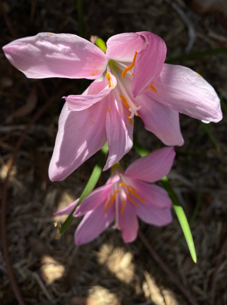 Later, I peeled mandarins for breakfast, the intense citrus aroma returning me to days of Christmas passed, when as children we waited with great anticipation for that special time. I waited for the sourdough bread to become golden toast. Once covered with butter dripping through the holes and onto the plate I did not wait to eat it. Having licked the plate mostly clean, I rinsed it while looking up and out to the garden. There, two precious native lilies nodded in dappled sunlight. The blossoms were perfectly imperfect and there was no sense waiting any longer to capture that moment forever.
