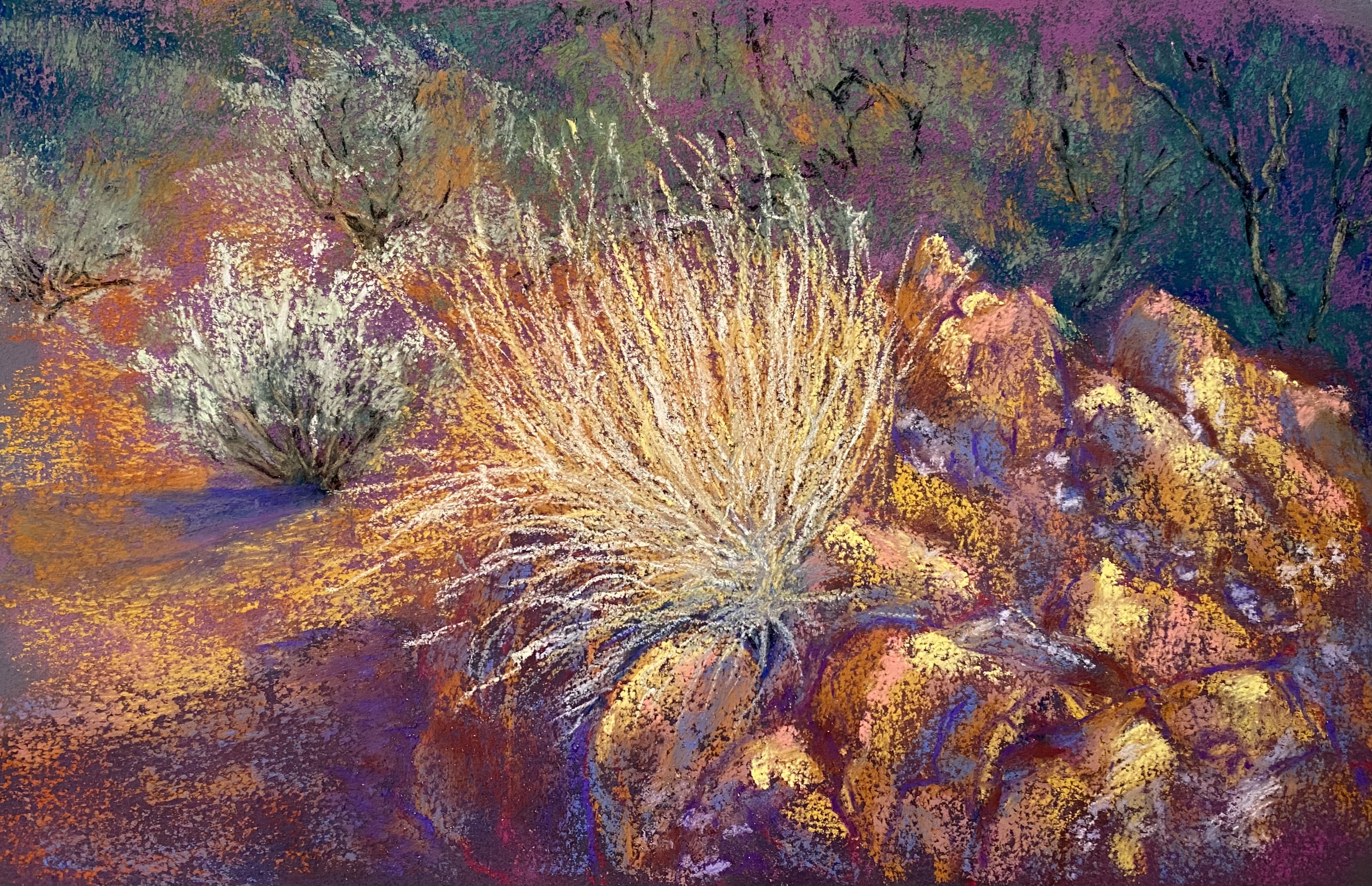 Some days I’m lucky enough that my morning walk helps me see a new corner of the environment to enthuse my painting sessions. In between all of the above I keep inspiring myself with new reading, listening and viewing of other artists’ works. One morning I was listening to a podcast interview with Andrew Greig, a Scottish poet and writer. I love a Scottish accent. (Must be genetic as my paternal Grandmother’s family was named Carlisle.) What captivated me was the title of the interview ‘When I’m dead, I will love this.’ He tells a story of running home in the cold and rain from the fish and chip shop, to keep his meal from getting soggy. And he thinks, as clearly as anything, as he is running, how wonderful running and a hot fish and chip meal would be if he was dead. I get it. It left me with shivers and tears on the rims.