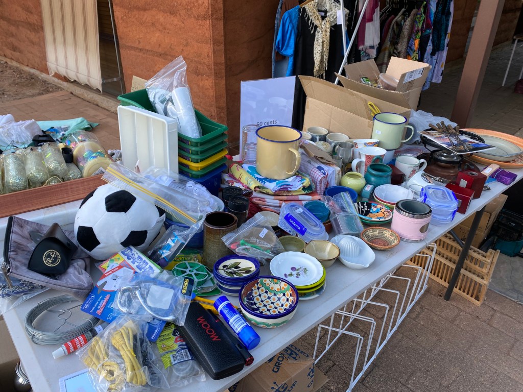 • A young woman probably in her late 20’s showed up at the lawn sale. She had moved to Alice recently and she was still trying to set up her rental quarters. She found a dozen things in the ‘free’ section, a few more in the 50 cent pile and when I saw her looking at clothes that I was pretty sure were her size and would suit a young person I offered her a space to try them on in the house. When she came out she was beaming, they all fit perfectly! One was a dressy top made of linen, a very nice piece that I knew I would never wear, having missed the occasion it was bought for, my 70th birthday. She told me she had a wedding to attend next month and a skirt it would look nice with. I reached over to a twice-used hand bag that went perfectly with the top and was just made for a young person and offered it to her as a gift. We were both very happy that she accepted!