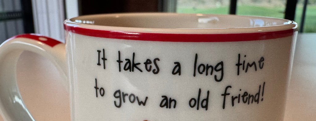 Joining the alchemy of nature came whiffs of coffee mingling, taunting. This was new. Not having had my morning cuppa yet, I slowed my pace to breathe deeply…eyes shut…memory emerging . I remembered a few camping trips when an experienced camper made coffee, throwing the grounds into boiling water, along with a eucalyptus leaf. That flavour did not appeal as much as the scent I was smelling. Drawn farther back to 60 years ago I could hear the percolator bubbling on Mom’s stove…and Grandma asking if I wanted a milky cup of ‘rat poison’, as she called instant coffee when I was a child. She would sweeten the milky coffee swirl and from those days on I was hooked. Coffee became my morning tradition. My poison and my elixir. Even now when I am sensitive to caffein and grind my own beans—a 50/50 mix of decaf and regular, the ritual of making it is almost as soothing as the consumption. I know how much coffee to measure and grind for my little glass pour-over jug and how much milk to heat for the perfect brew. It is one of few predictable things of daily life. These rituals anchor us.