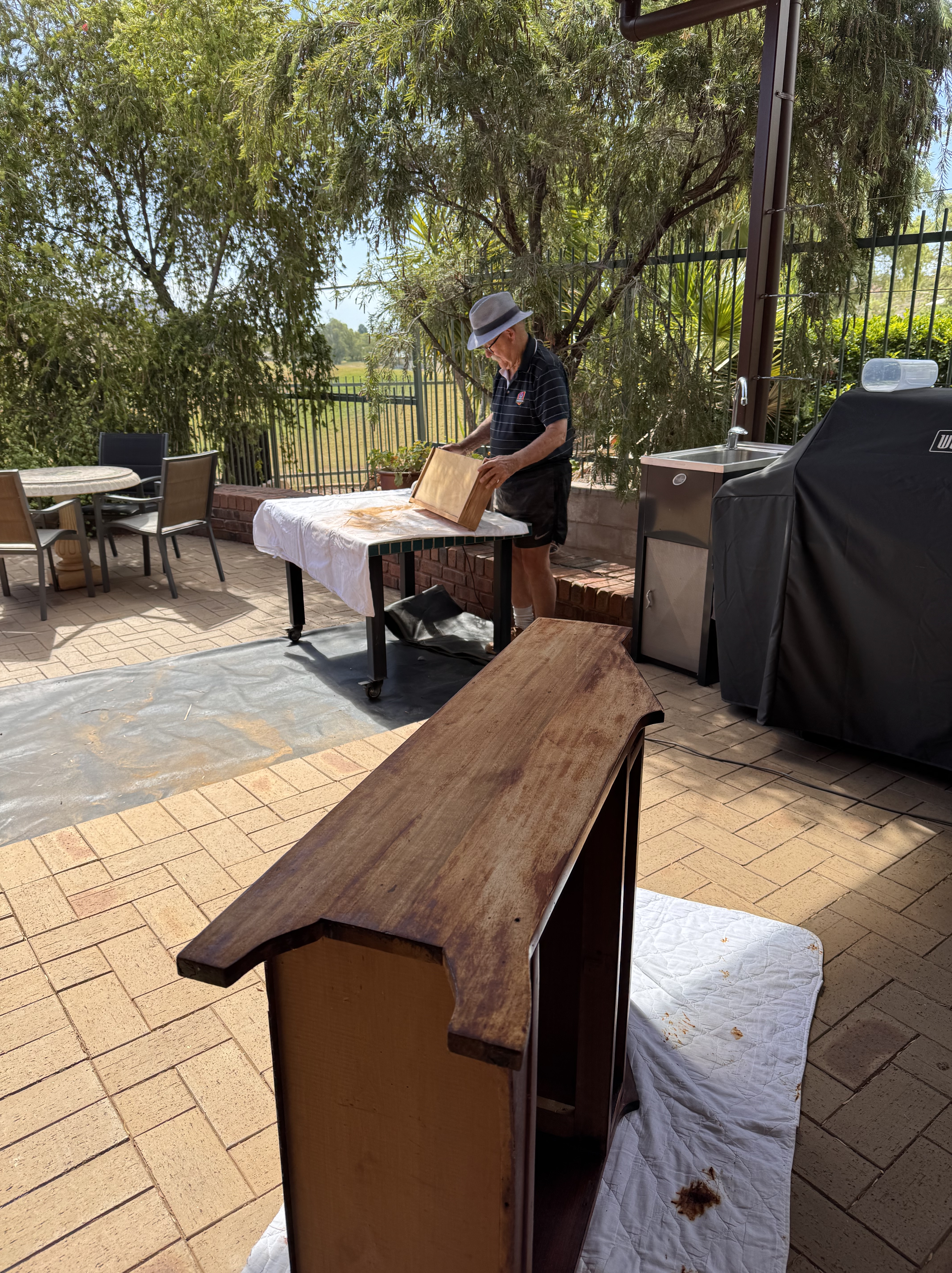 Over subsequent weeks and months of travel and health appointments and further discussions we decided on a plan to paint the desk to modernise it and make it โdownsize worthyโ over the Christmas/New Year break. More videos to watch and conversations and finally, trips to the hardware store.
