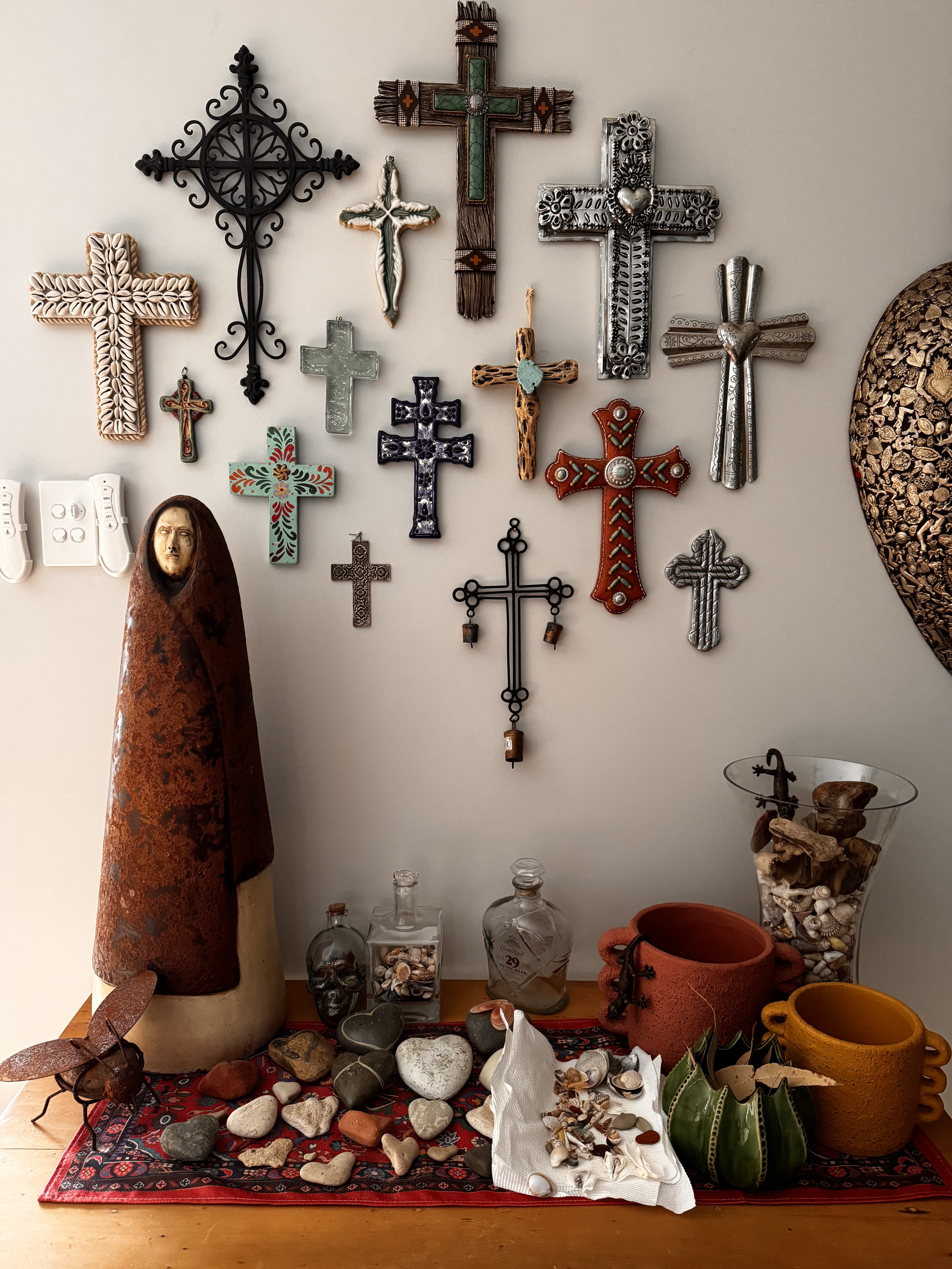 1. Thank you Eha. Honestly this house is like a museum to Freida and Mexico. I don’t want to invade their privacy with too many photos but the ones I used are just a sample of one display after another, very well curated with our friend’s artistic eye. There are at least five displays of crosses, all unique and well done. I will definitely not forget you when I go to the markets in less busy times and can take photos. I have been eating some delicious figs from there this week and will try to post on Instagram soon. Thanks for reading xx