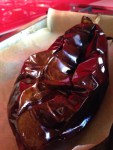 Wash but donโt trim eggplant. Oil the skin lightly so that it is easy to peel, but to get a more charred taste, leave the oil off and the skin will get blistered and come off, leaving tiny pieces of charred skin on the eggplant, which only adds to the flavour. Place whole eggplant in a baking pan in a hot 210C (400 F) oven for 40 minutes.