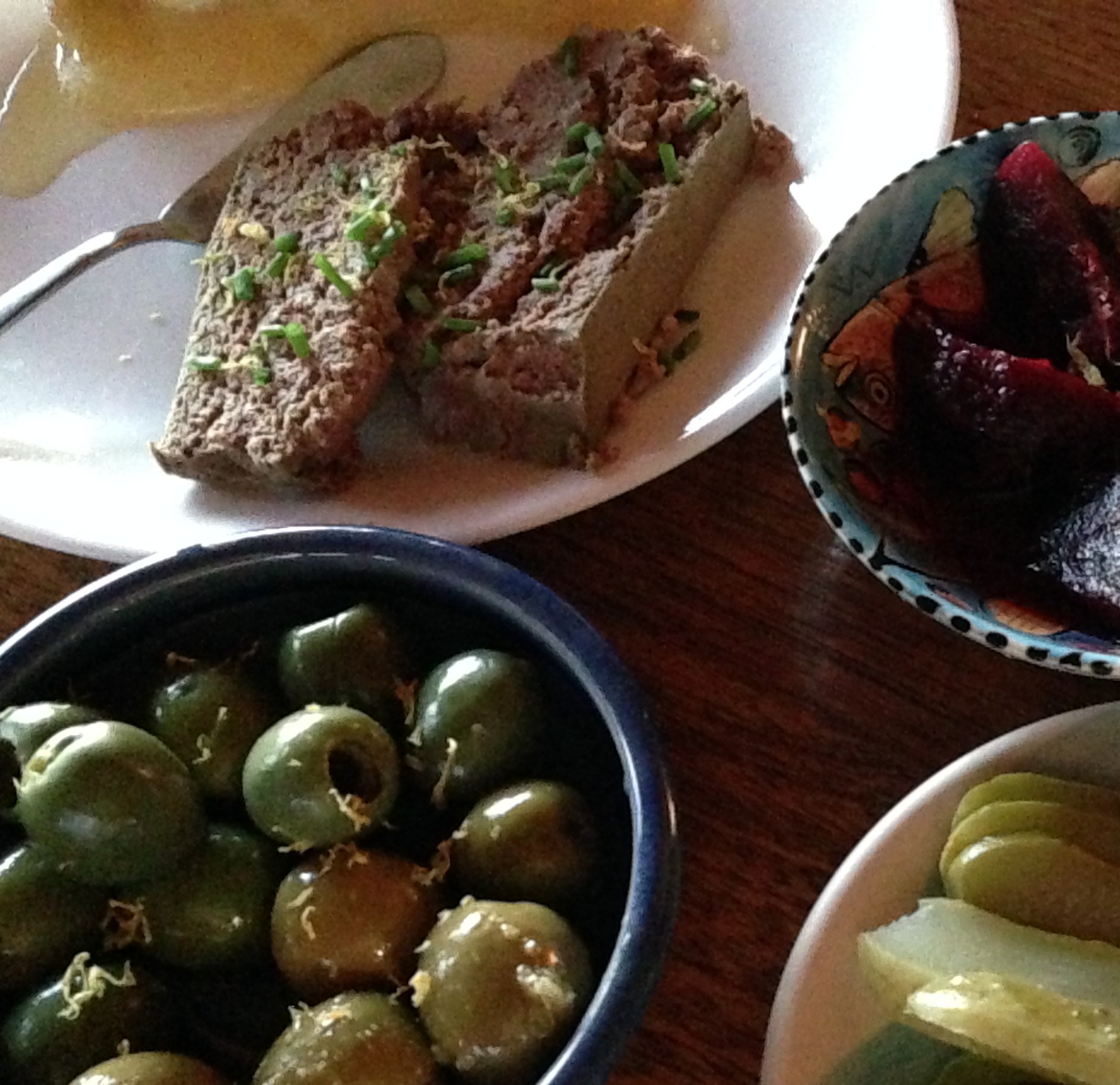 This resulted in a beautiful, soft, perfectly set paté, very simple in flavour, which perfectly accompanies condiments served along with it. I did sprinkle over a few fresh chives which were very nice. * I did not want the gelatine topping on it that the original recipe called for, though it would have looked prettier. I often find I don’t like the flavours in the gelatine toppings. If you would like to make the gelatine topping for a prettier paté, here is the link to the original recipe.